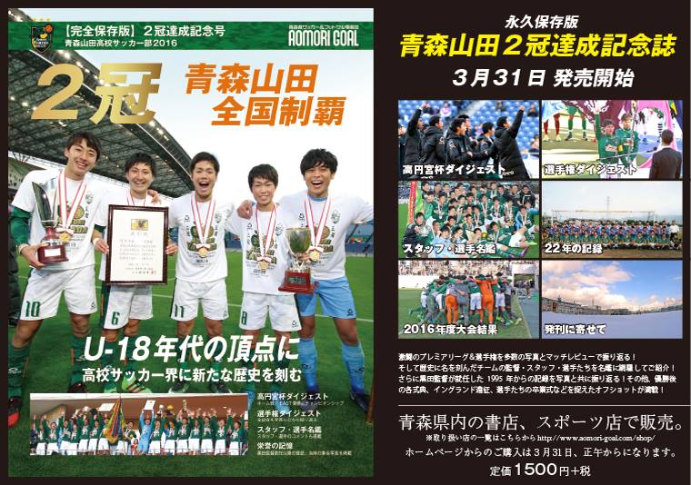 2016年度『高円宮杯プレミアリーグU18チャンピオンシップ優勝』『第95回全国高校サッカー選手権大会優勝』全国大会2冠を記念致しまして、青森ゴールより特別号が発売されました!