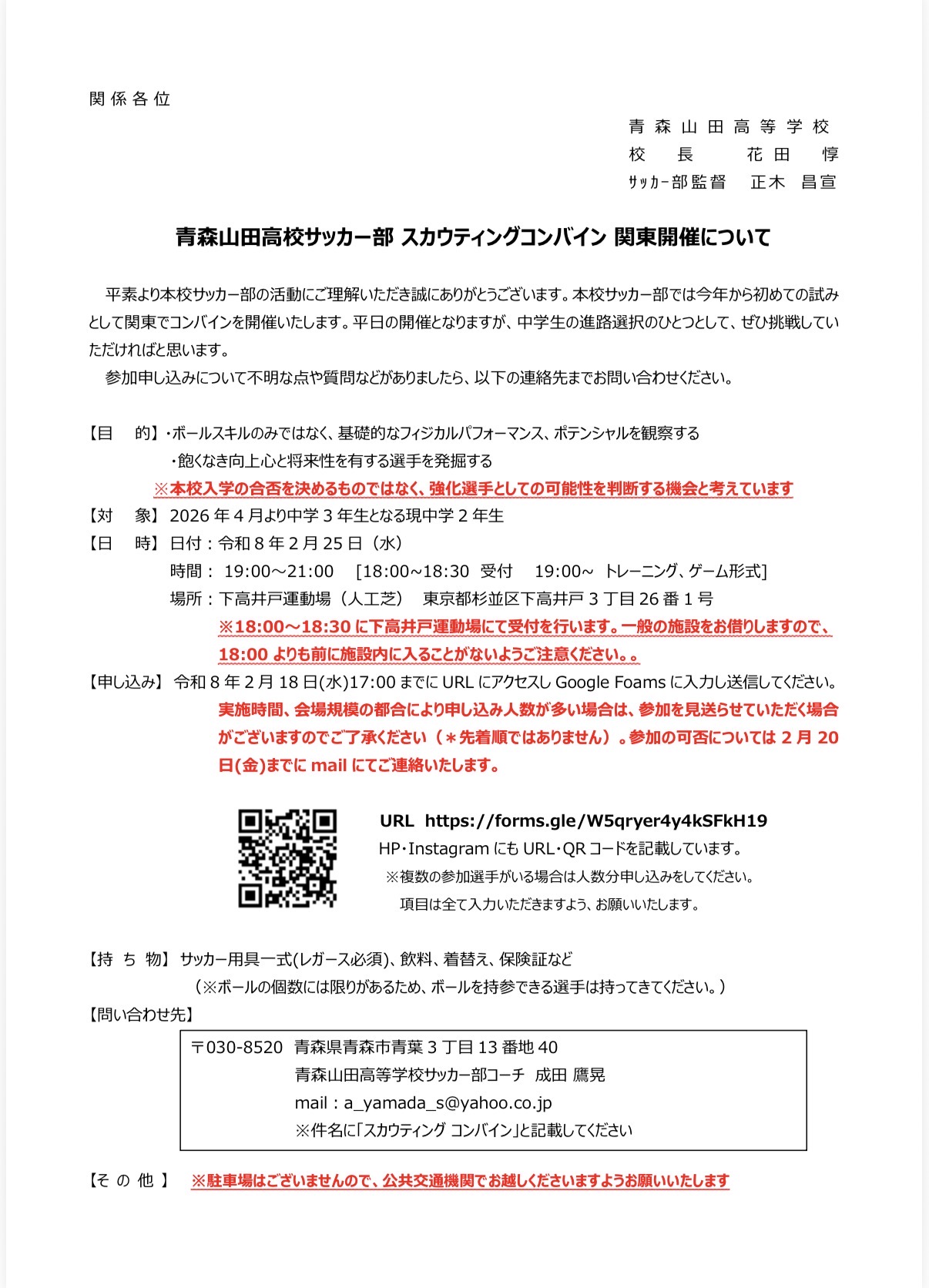 青森山田高校サッカー部 スカウティングコンバイン関東開催のお知らせ