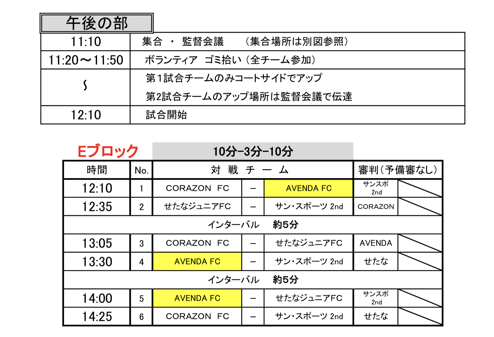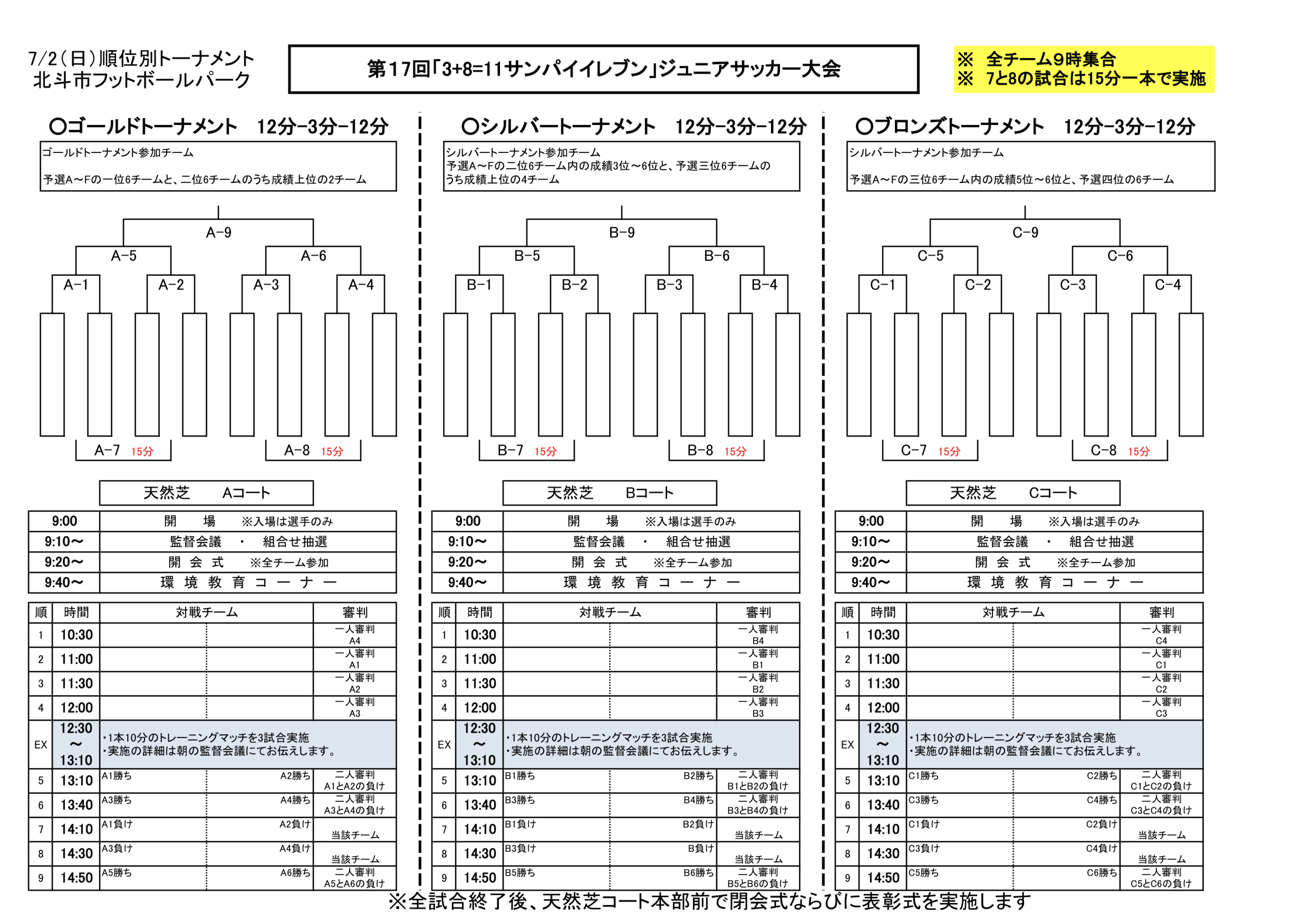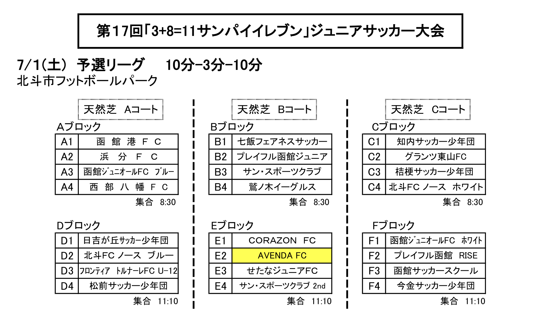 第17回「3+8=11サンパイイレブン」ジュニアサッカー大会 組み合わせ