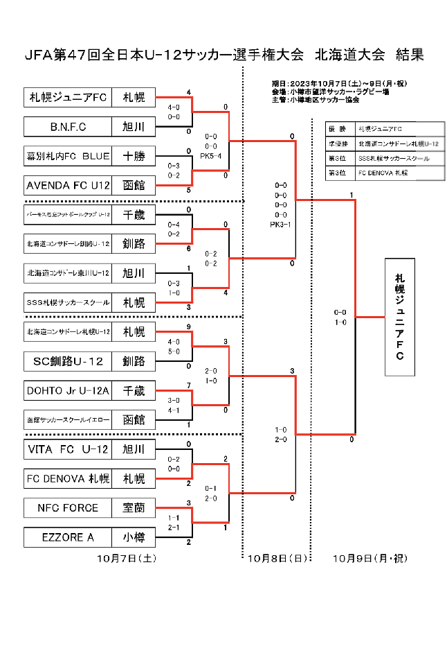 JFA第47回全日本U-12サッカー選手権大会 北海道大会結果