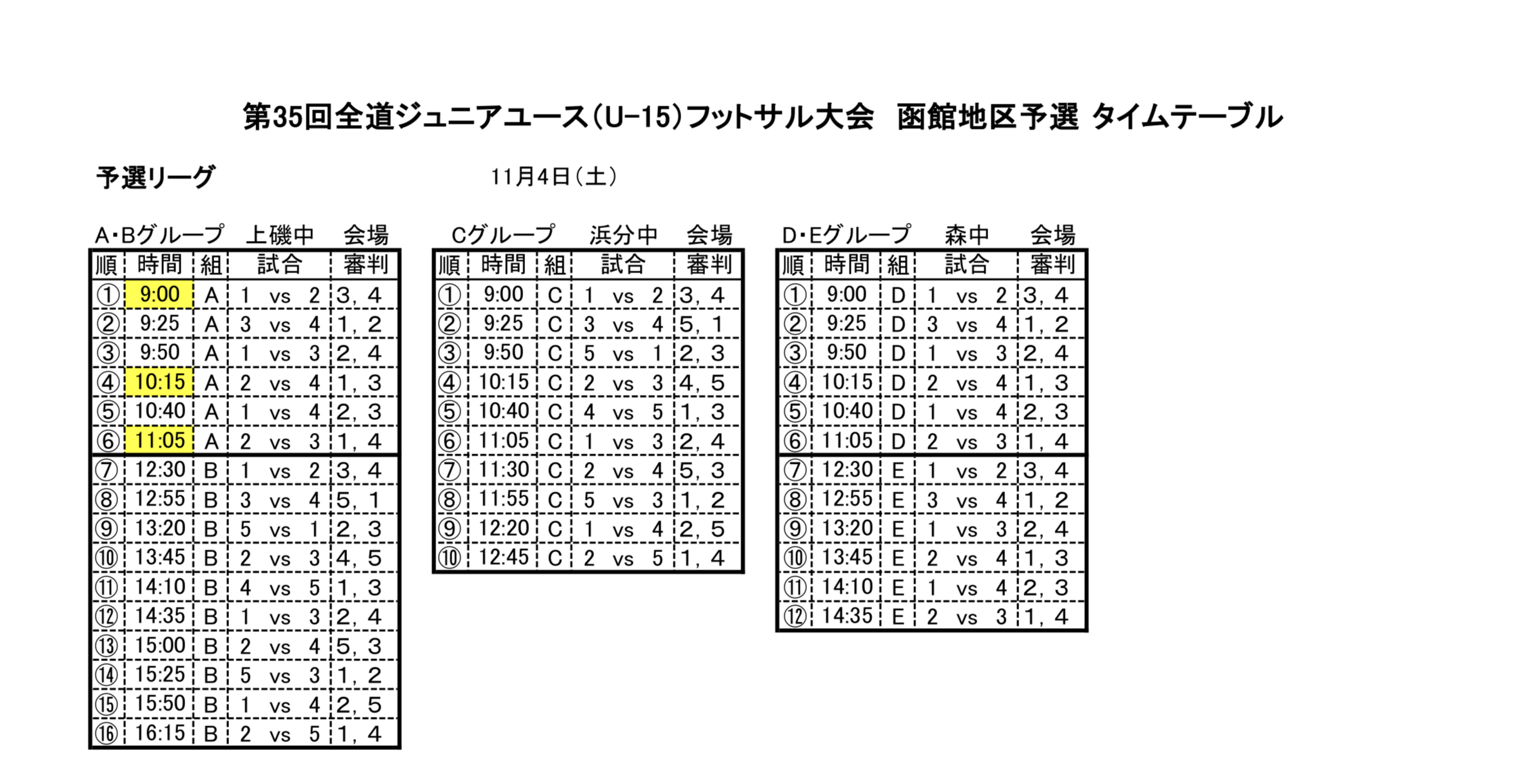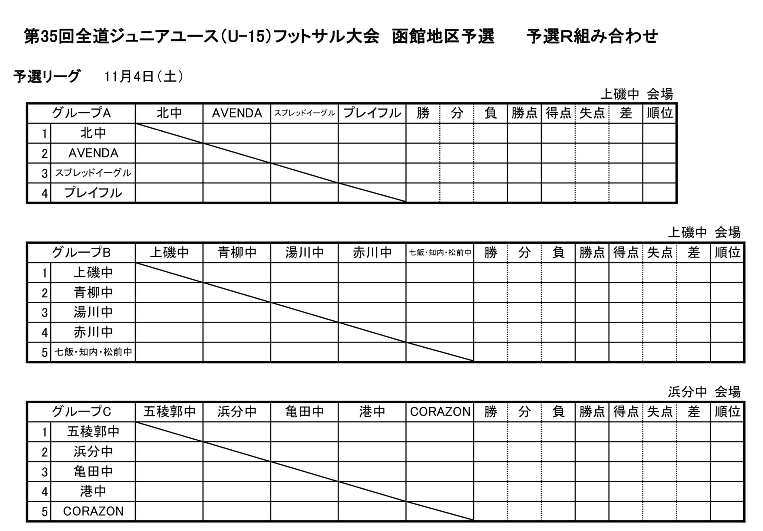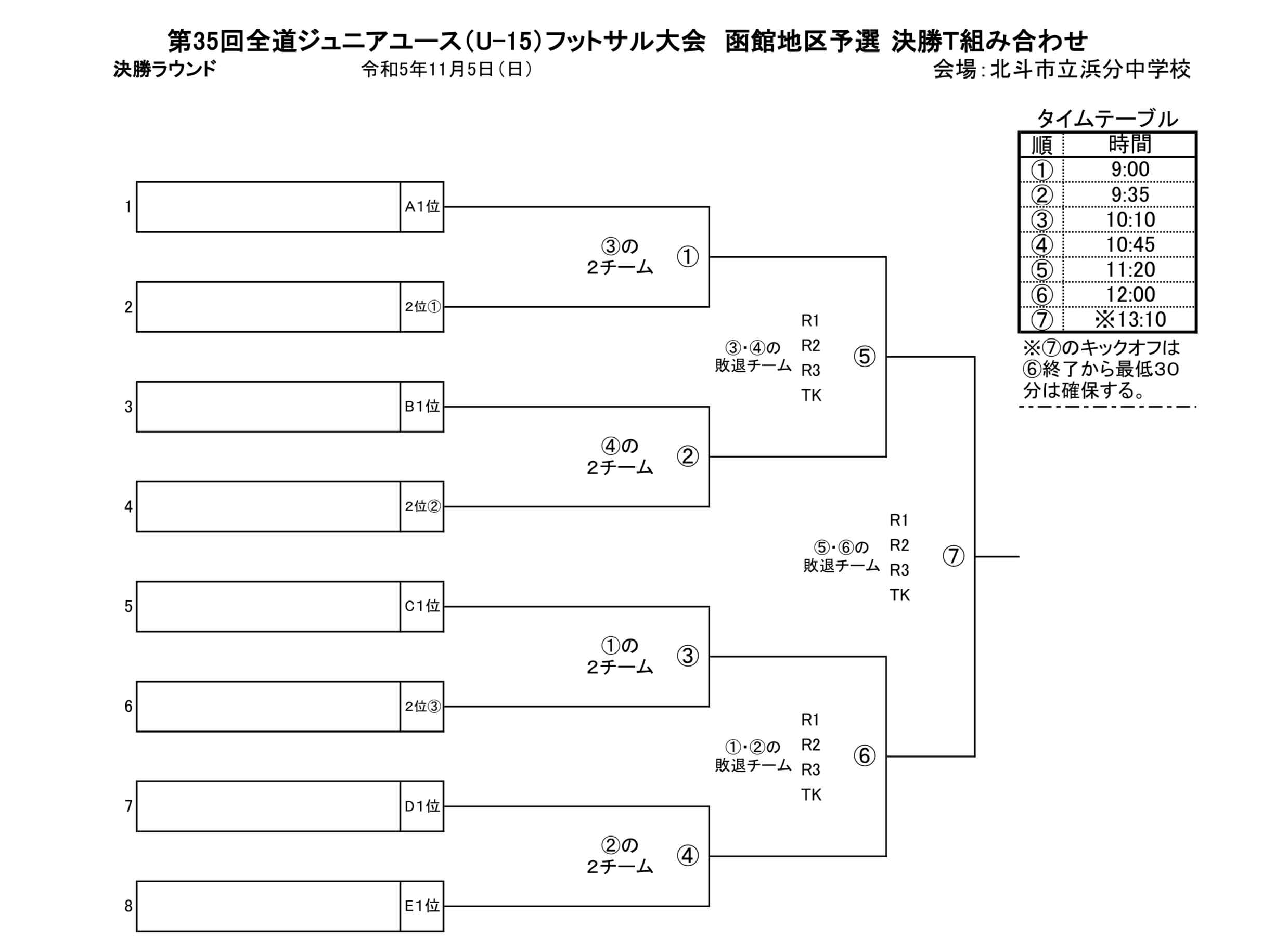 第35回全道ジュニアユース(U-15)フットサル大会 函館地区予選 決勝T組み合わせ