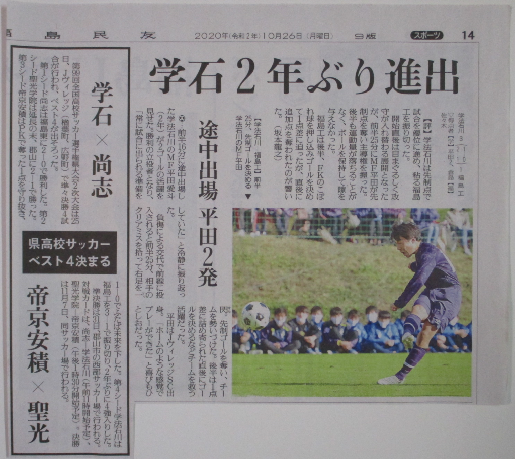 第99回全国高校サッカー選手権大会福島県大会 準々決勝新聞