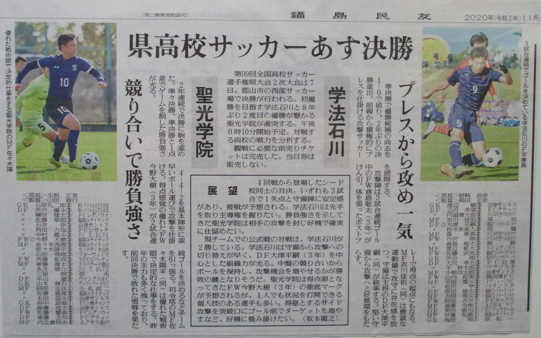 第99回全国高校サッカー選手権大会福島県大会 新聞記事