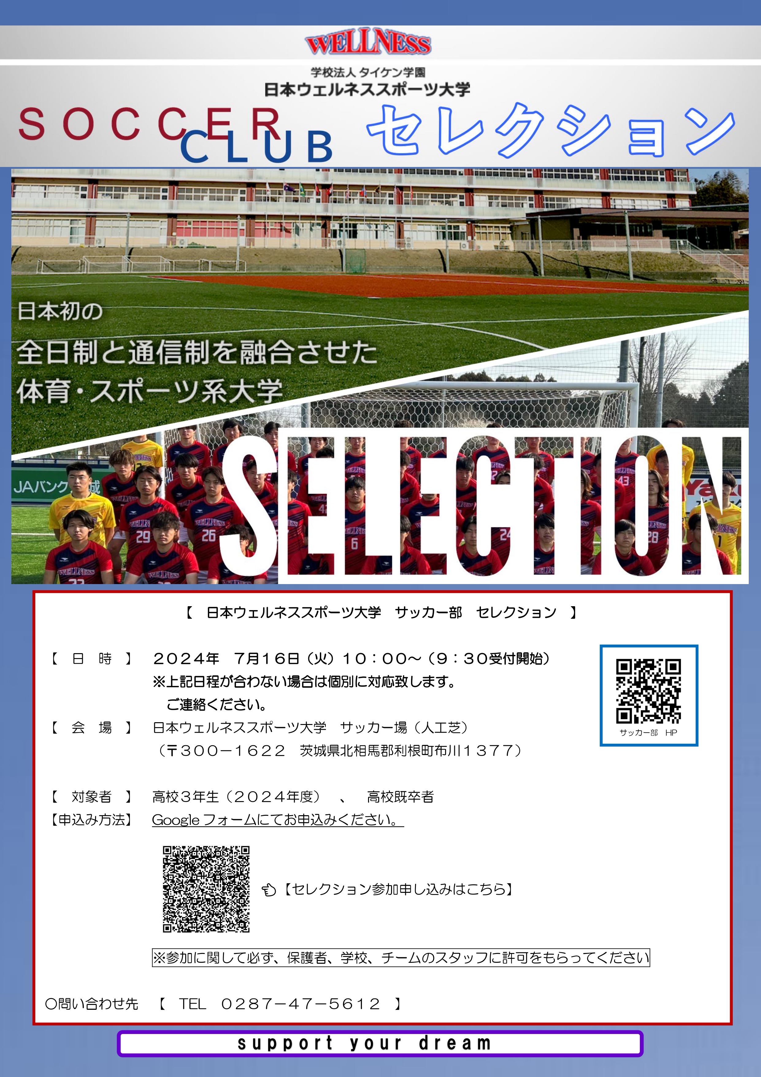 2025年度 日本ウェルネススポーツ大学サッカー部 セレクションのご案内