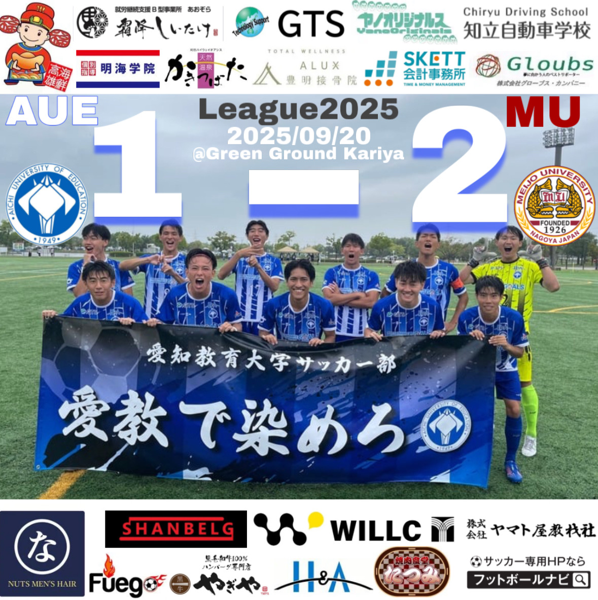 | こんにちは! 第64回 東海学生サッカーリーグ戦2部 第11節の試合結果をお知らせします! ![]() 🎖第64回東海学生サッカーリーグ戦2部 第11節 ⏰2025年9月20日(土) 9:00kickoff 🏟グリーングラウンド刈谷 🆚名城大学 ⚽️愛教大 1-2 名城大 (前半 0-0/後半 1-2) 👟64分 失点 87分 失点 90+4分 井上(4年 三重) 〇スターティングメンバー GK 佐波(4年 七尾) DF 鬼頭(1年 熱田)⇆52分 伊藤羽(2年 天白) DF 金森(4年 長久手) DF 中島(1年 矢板中央) DF 佐竹(1年 帝京大可児) MF 伊故海(3年 愛知FC U18) MF 重田(4年 広島皆実) MF 吉岡(3年 名東)⇆66分 森(2年 一宮西) MF 間瀬(3年 半田) FW 井上(4年 三重) FW 齋藤(1年 名古屋)⇆82分 安部(1年 一宮西) ○ベンチメンバー GK 植村(1年 天白) DF 水野(2年 愛知FC U18) DF 小池(1年 八千代松陰) MF 家崎(2年 天白) MF 伊藤羽(2年 天白) MF 木下(1年 春日井) MF 松岡(1年 愛工大名電) FW 森(2年 一宮西) FW 安部(1年 一宮西) 今回は、佐竹(1年 帝京大可児)が試合を振り返ります!⚽️ 今日のリーグ戦は、愛知教育大学と同じく一部昇格を狙っており、昇格圏の3位を争っている名城大学との直接対決でした。 絶対に負けられない状況で試合を迎え、前半は集中した守りで相手に得点を与えませんでしたが、後半に入り、攻勢を強める相手に試合の主導権を握られ始め、2失点を許してしまうことになりました。試合終盤にはキャプテンの井上(4年・三重)のゴールで一矢報いたもののそのまま試合が終了し、一点差での悔しい敗戦となってしまいました。 ただ、リーグ戦が終わったわけではないので残りの試合を全力で戦っていきたいです。 〈試合予告〉 🎖第64回東海学生サッカーリーグ戦2部 第12節 ⏰2025年9月27日(土)18:30kickoff 🏟グリーングラウンド刈谷 🆚名古屋大学 サッカー部の公式X、Instagram、YouTube、TikTokはこちら⬇️からご覧ください! 【X】 【Instagram】 https://www.instagram.com/auesoccer/ 【YouTube】 https://m.youtube.com/@auesoccer 【TikTok】 |