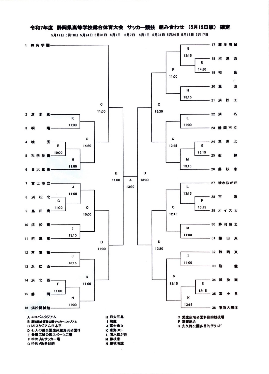 令和7年度高等学校総合体育大会サッカー競技静岡県大会組み合わせ