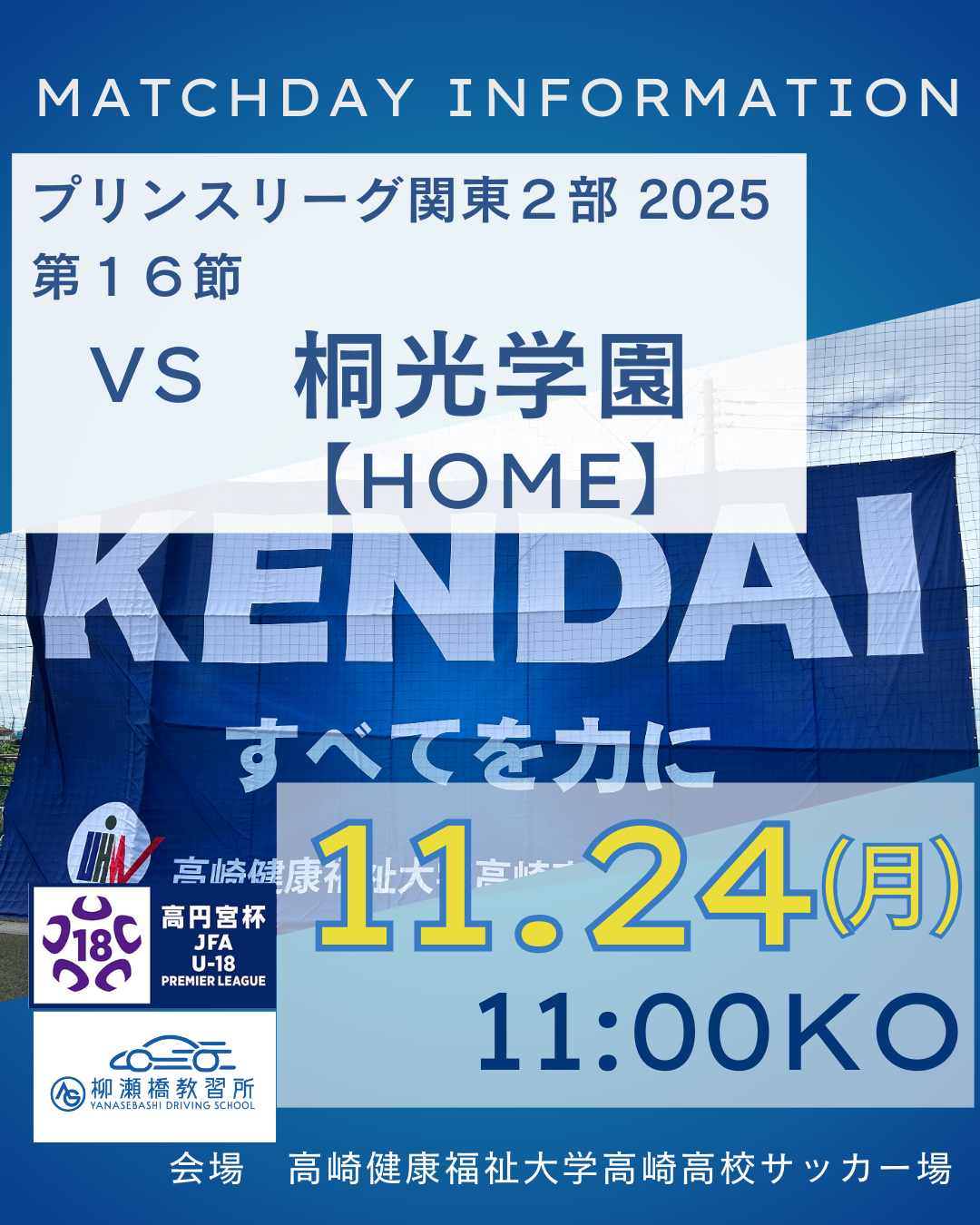 高円宮杯 JFA U-18サッカープリンスリーグ2025 関東2部 第16節〔HOME〕