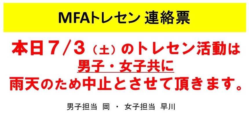 本日のトレセン活動は男子・女子共に雨天中止となりました。