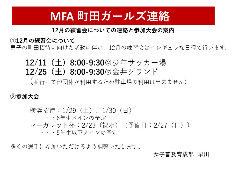 町田ガールズの練習会と今後の予定