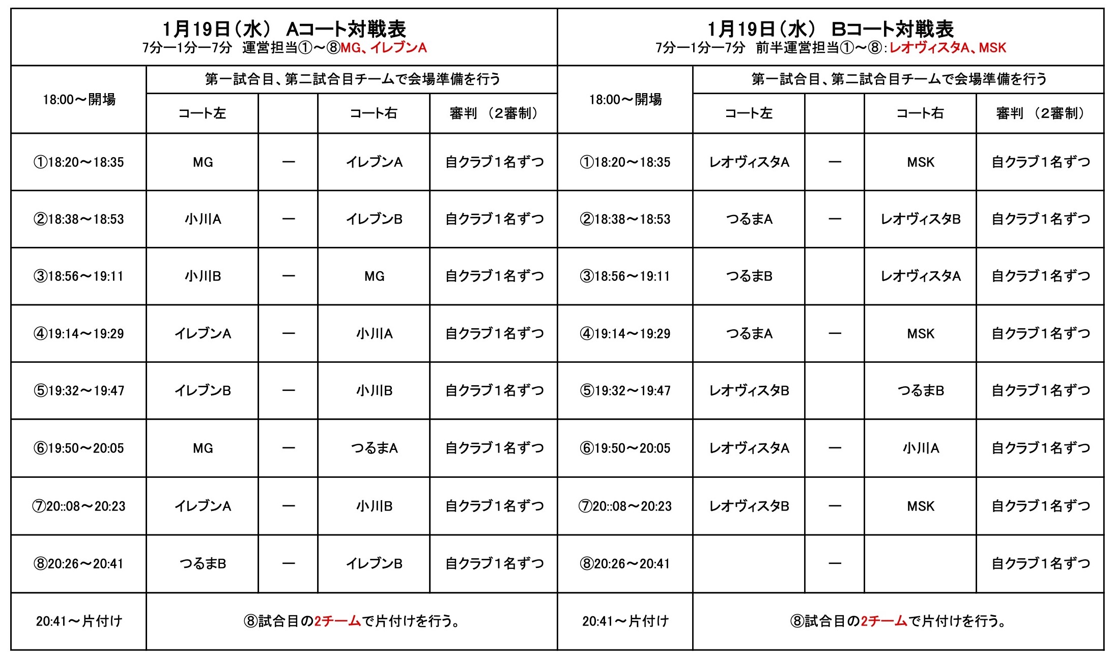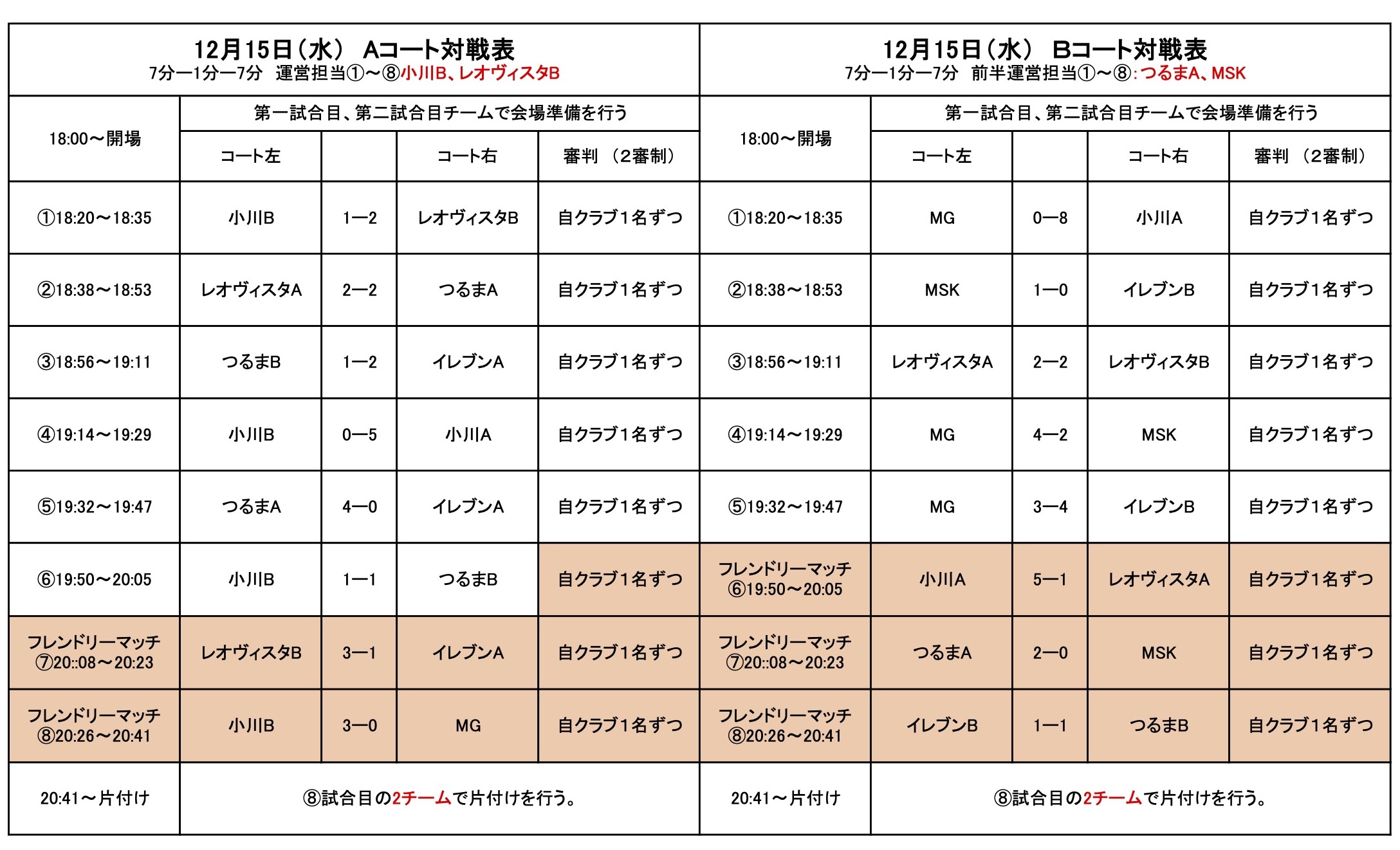 フットサルリーグU-12の結果と次節の予定