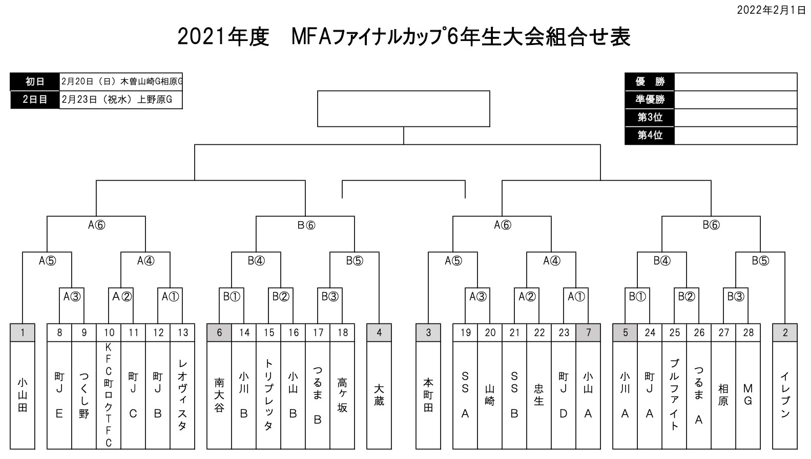 MFAファイナルカップ6年生の初日予定(訂正版)
