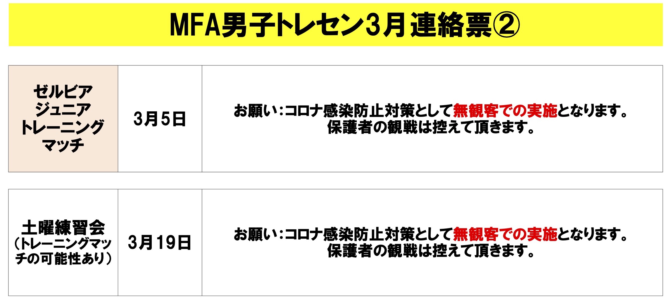 MFA男子トレセン3月活動予定をアップします
