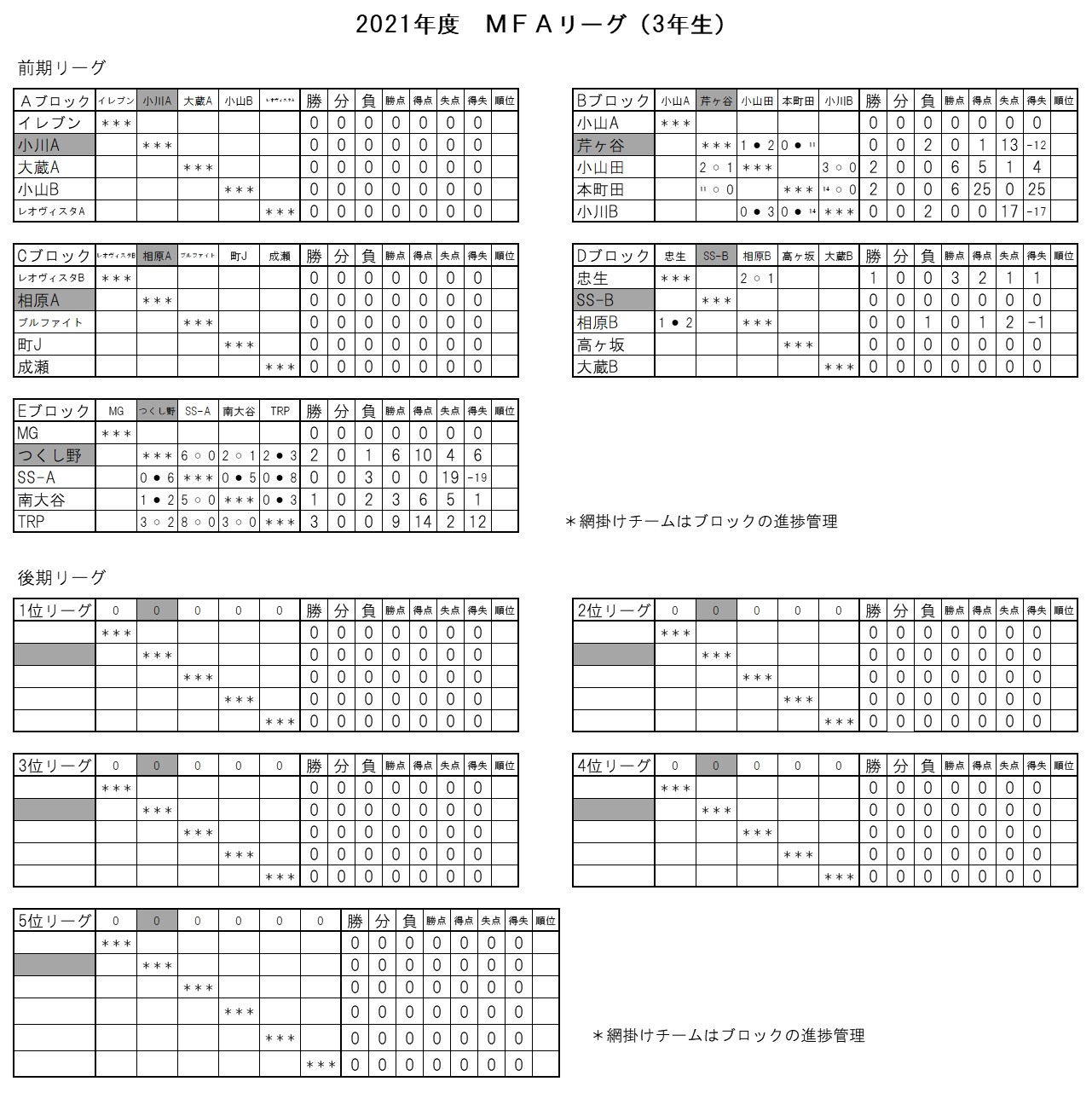 MFAサルビアリーグ前期 3年生大会 試合進捗