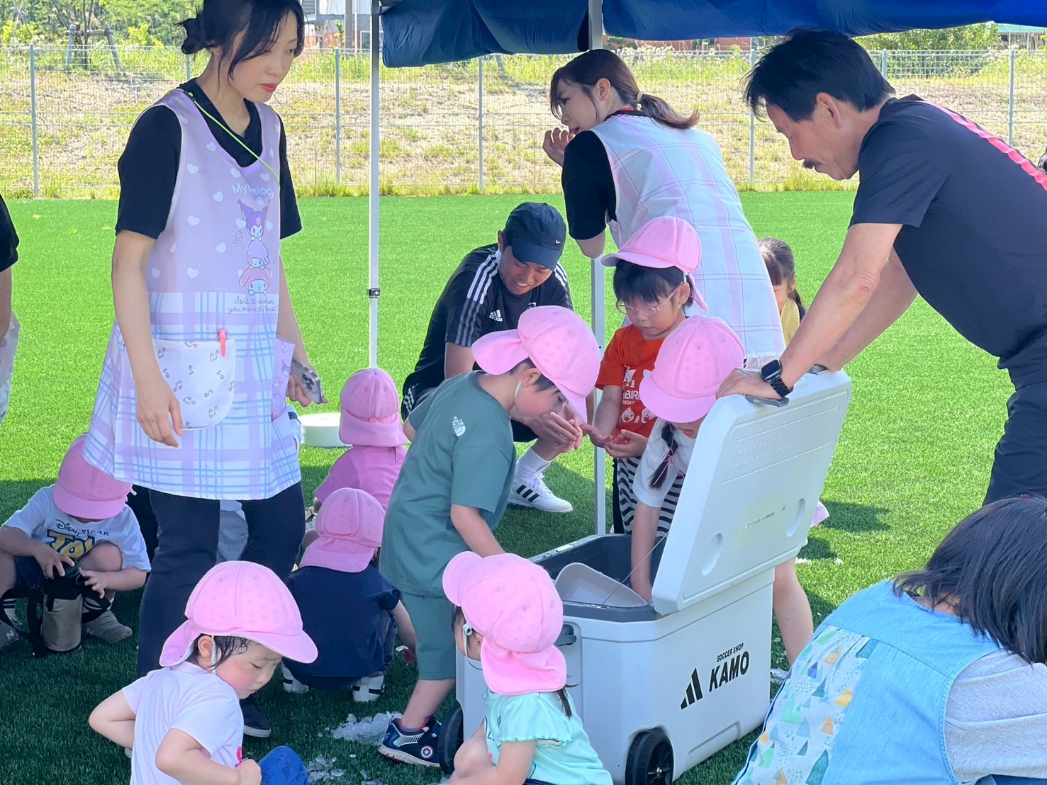 この時期には珍しい氷遊びに興味津々なりながら熱中症対策を行いサッカースクールを実施することが出来ました🙌