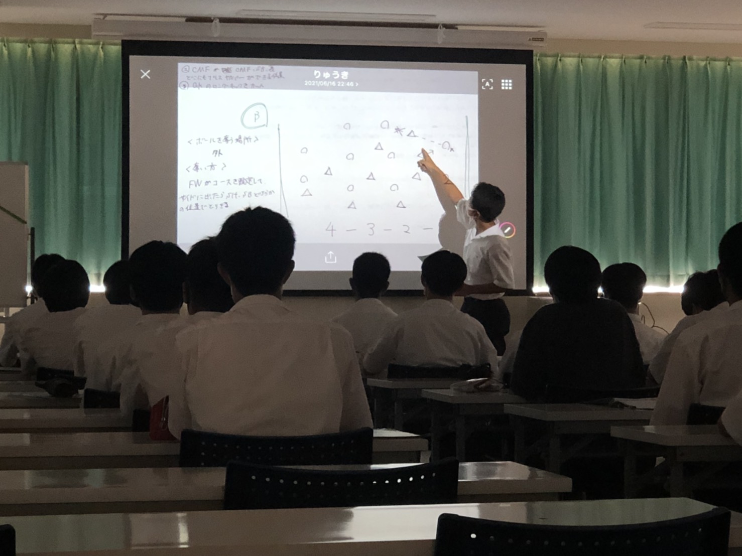 守備のブロックの作り方に関しての発表風景です。