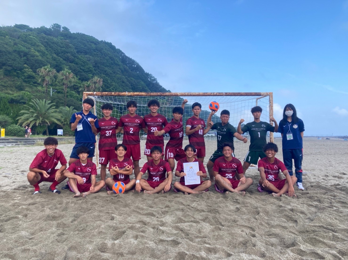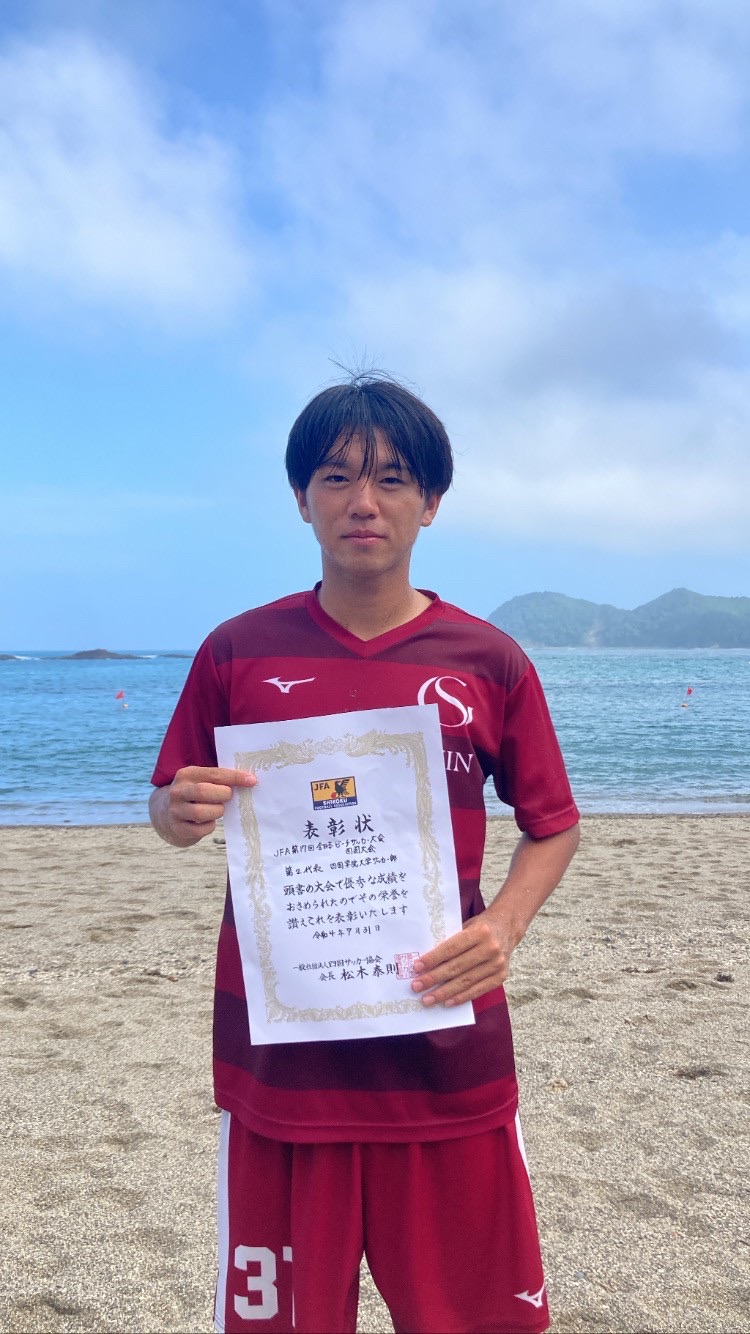 | 1試合目 vs今治市役所 1ピリオド 1-3 2ピリオド 4-2 3ピリオド 3-2 合計 8-6 得点者 増渕太洋 野中瞬生 若月海斗 吉田悠人×3 野中勇希(オウンゴール) 川内創太 2試合目 vs高知大学 1ピリオド 1-4 2ピリオド 1-3 3ピリオド 1-1 得点者 若月海斗×2(1本オウンゴール) 久堀卓臣 3試合目 vs今治市役所 1ピリオド 2-0 2ピリオド 1-1 3ピリオド 3-3 得点者 山川岳人 若月海斗×2 吉田悠人 川内創太 増渕太洋 <久堀卓臣選手のコメント> 今日はビーチサッカーの大会で1回戦今治市役所との試合でした。初めてのビーチサッカーということもあり初めはルールも曖昧で中々うまく行きませんでしたが、なんとか8-7で勝利することができました。 決勝では高知大学と対戦しました 序盤から相手の勢いに圧倒され三失点してしまいました。そこからも次々に失点し 結果3-7で負けてしまいました。そしてそのまま順位決定戦で勝てば全国が決まる試合がありました。相手は一回戦の相手で 序盤に3点リードし、ペースを掴んでいましたが後半の最後に追いつかれ相手の勢いも上がってき危ないシーンが多かったですが粘り強い守備で守りそこから得点を奪うことができ勝つことができました。この1日で課題がたくさん見つかったので全国大会までに改善し、優勝を目指して頑張りたいと思います。応援ありがとうございました |