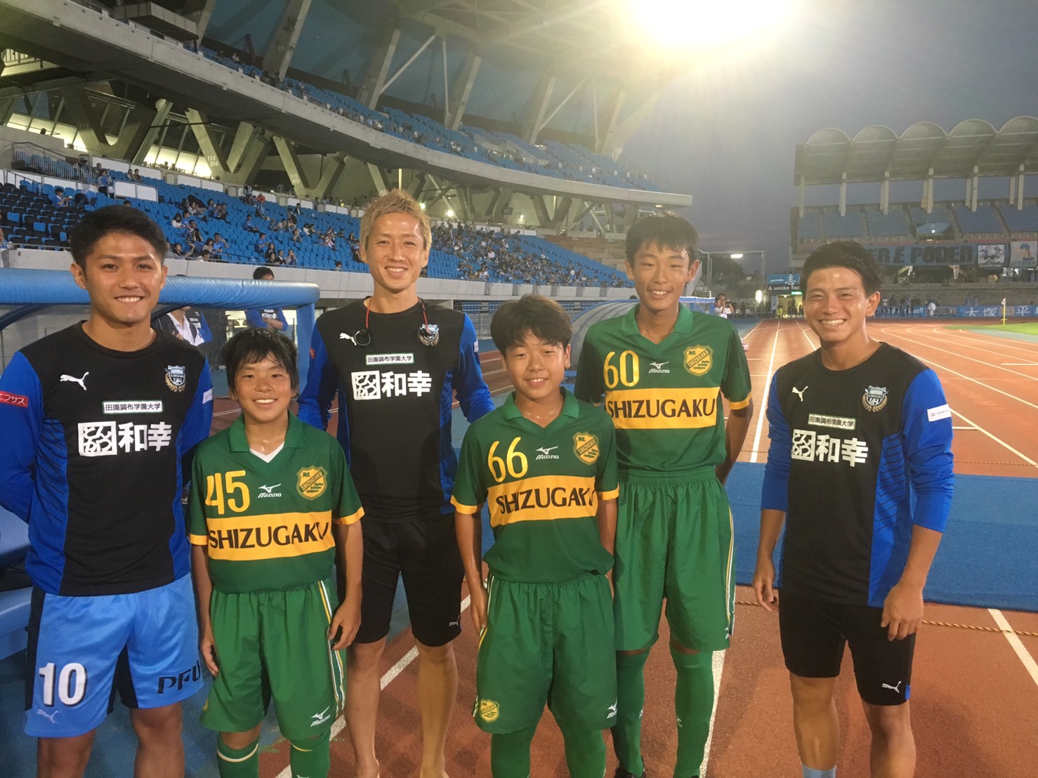 試合観戦では、狩野健太選手、大島僚太選手、長谷川竜也選手、静岡学園の先輩3人が一緒にプレーしているところを見れました。