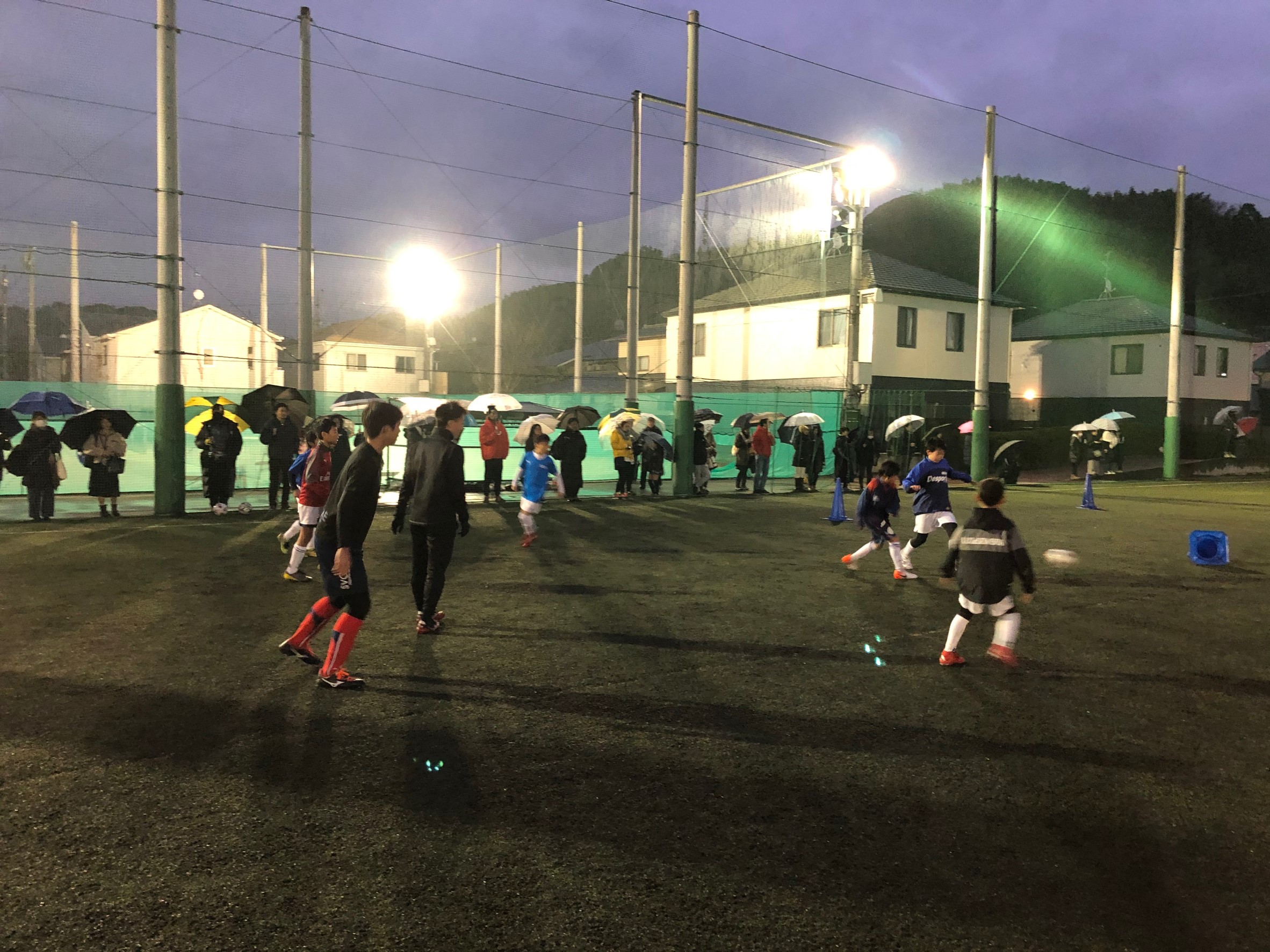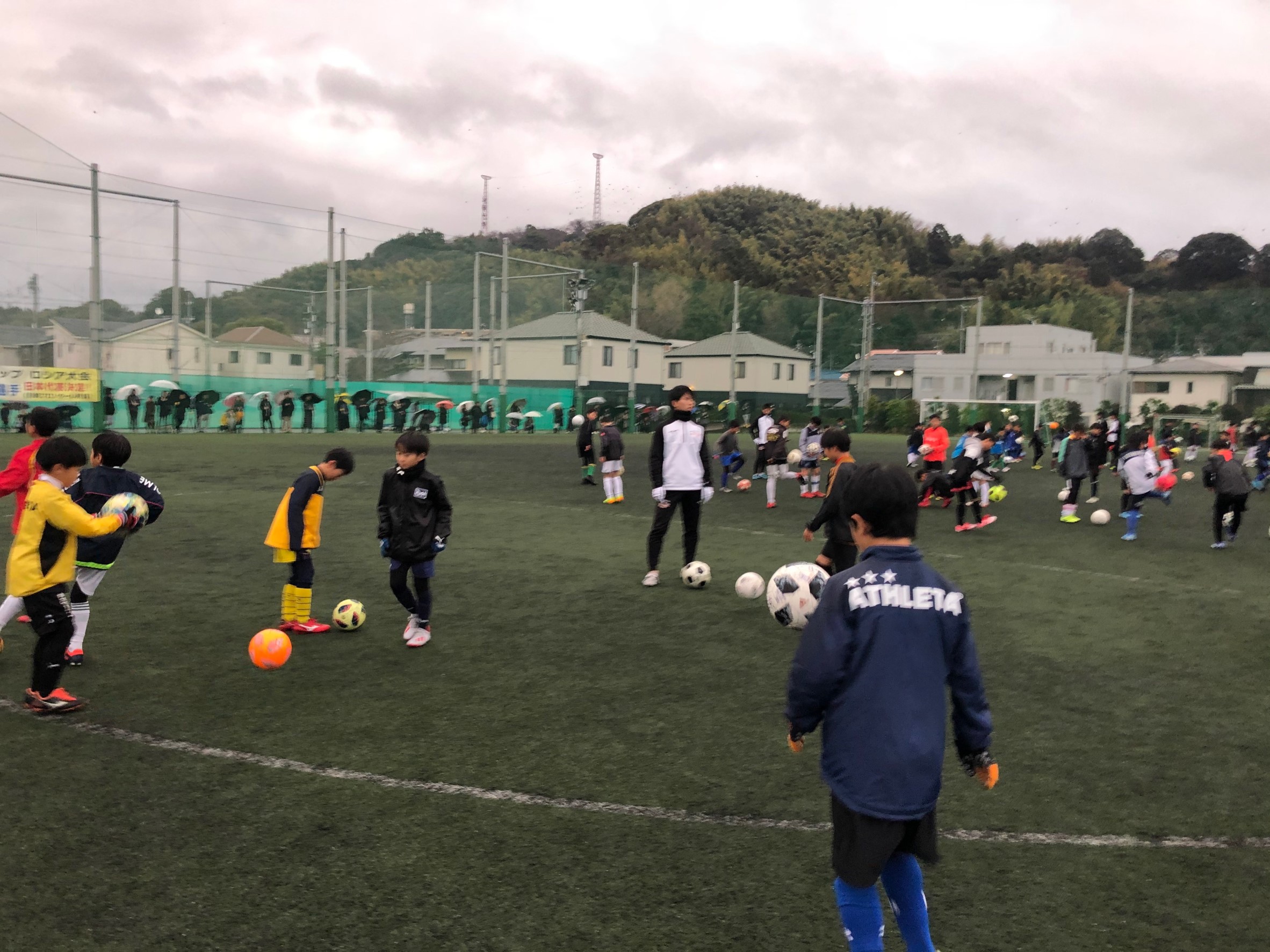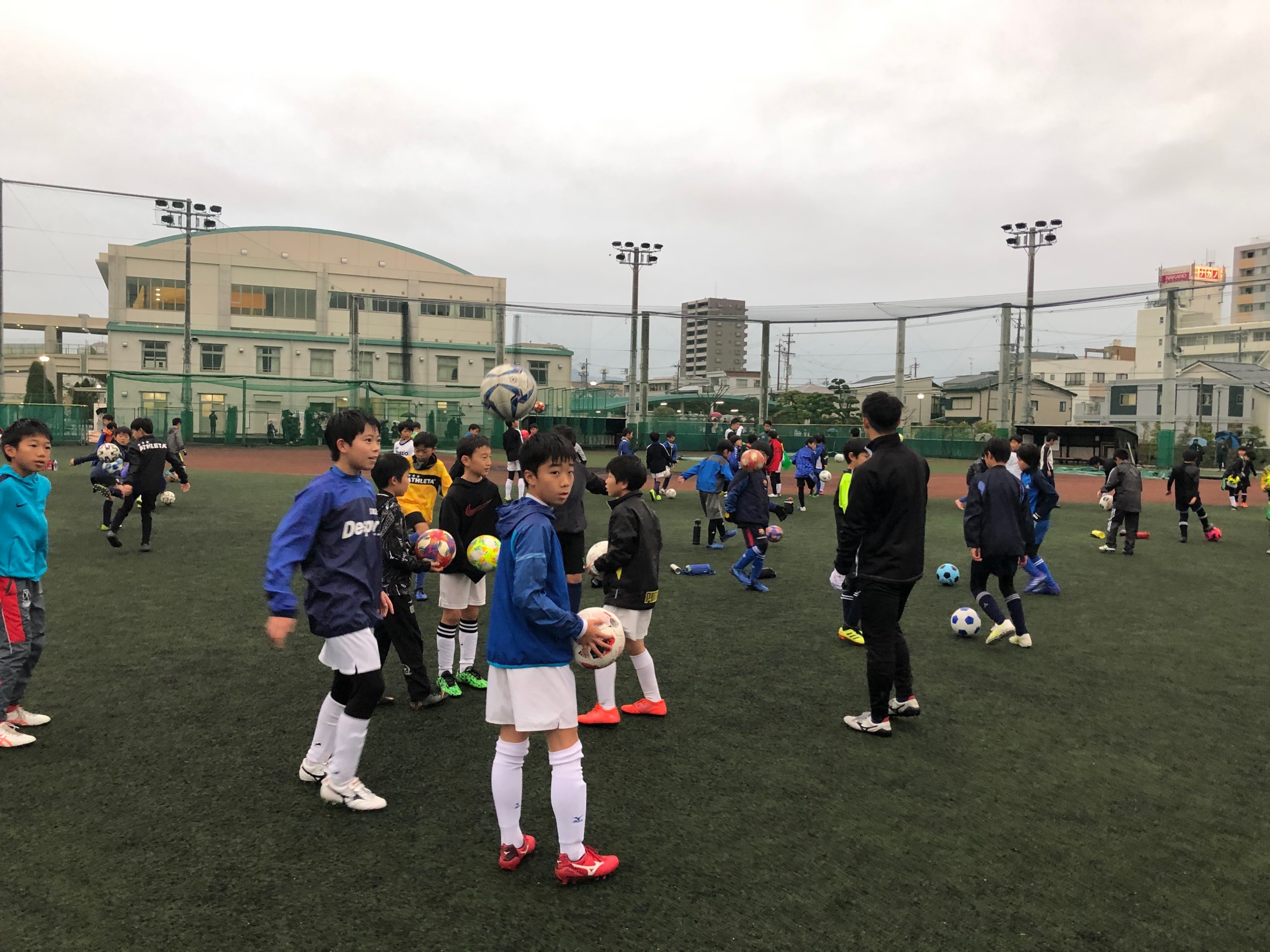 優勝メンバーによるリフティングやドリブルのお手本や技術的な指導を直接受け、最後にミニゲームを行い優勝メンバーとたくさん触れ合いました。