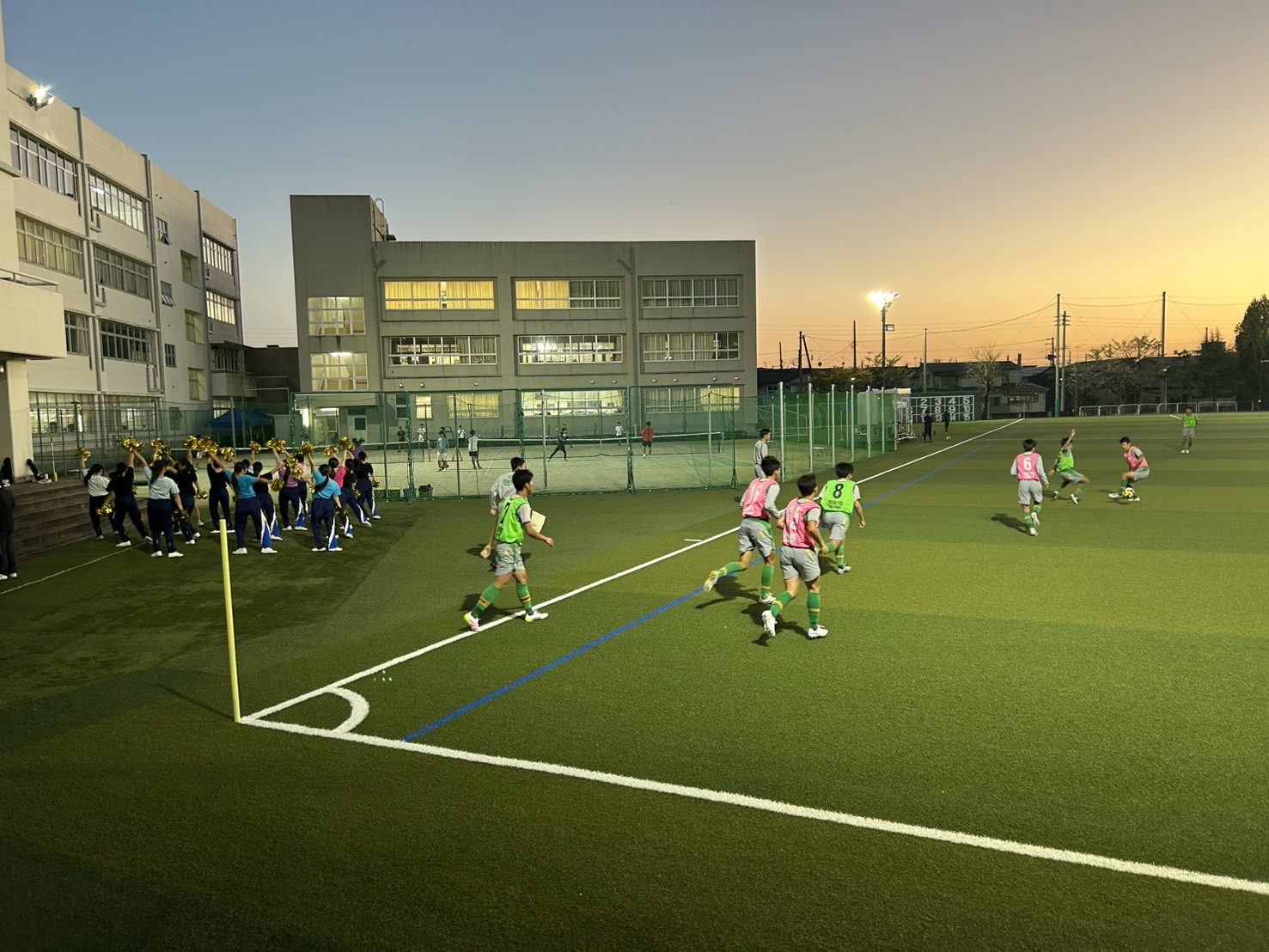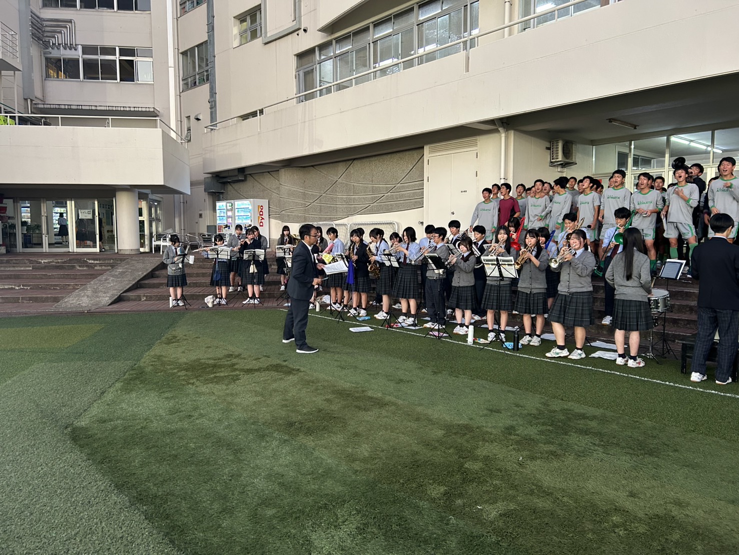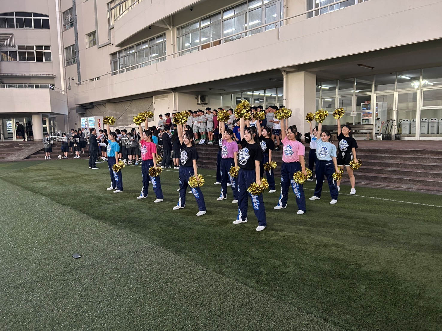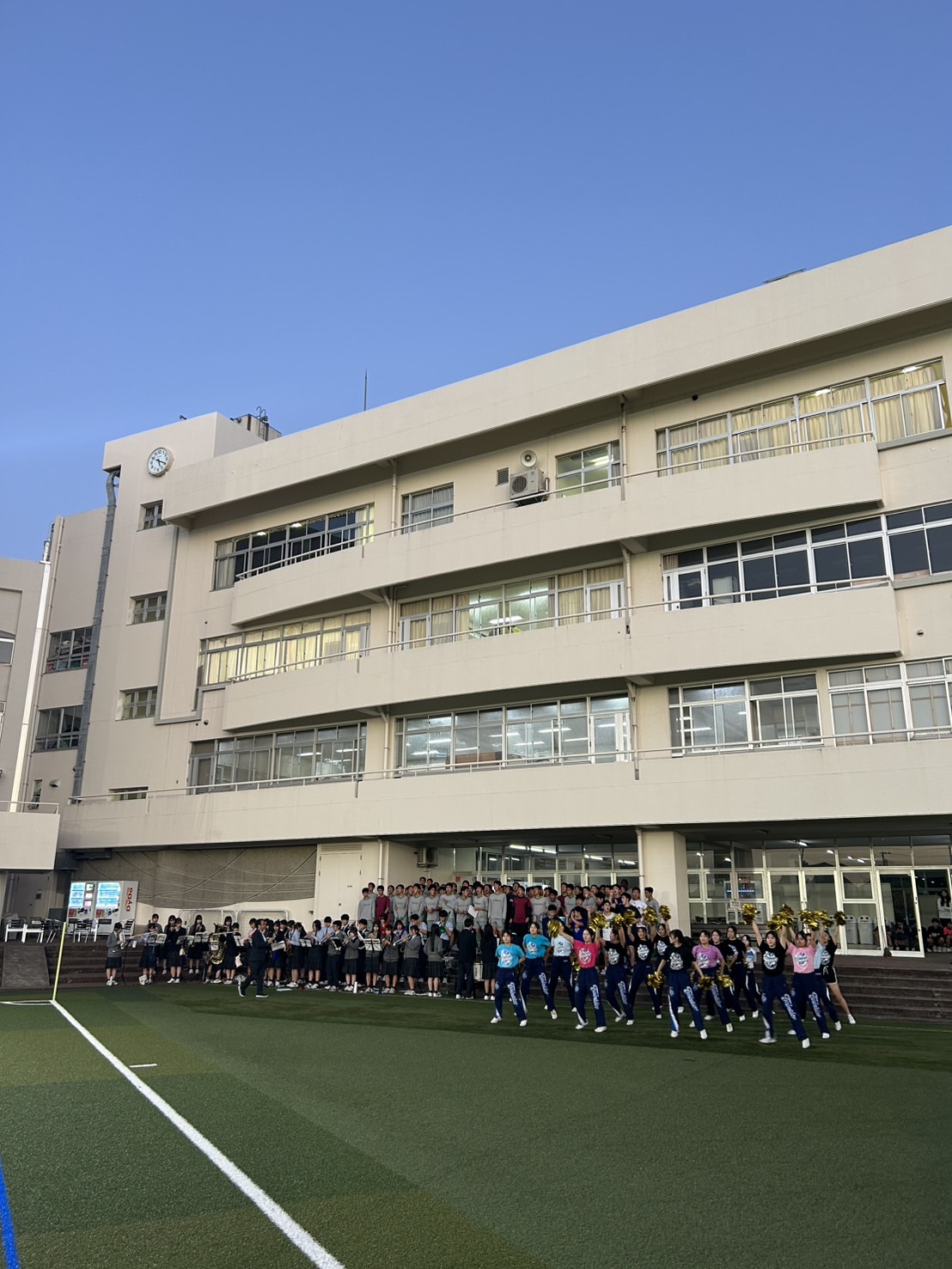 緑🟢に染めるべく応援TRに吹奏楽部、チアリーディング部のサポート頂いております‼️