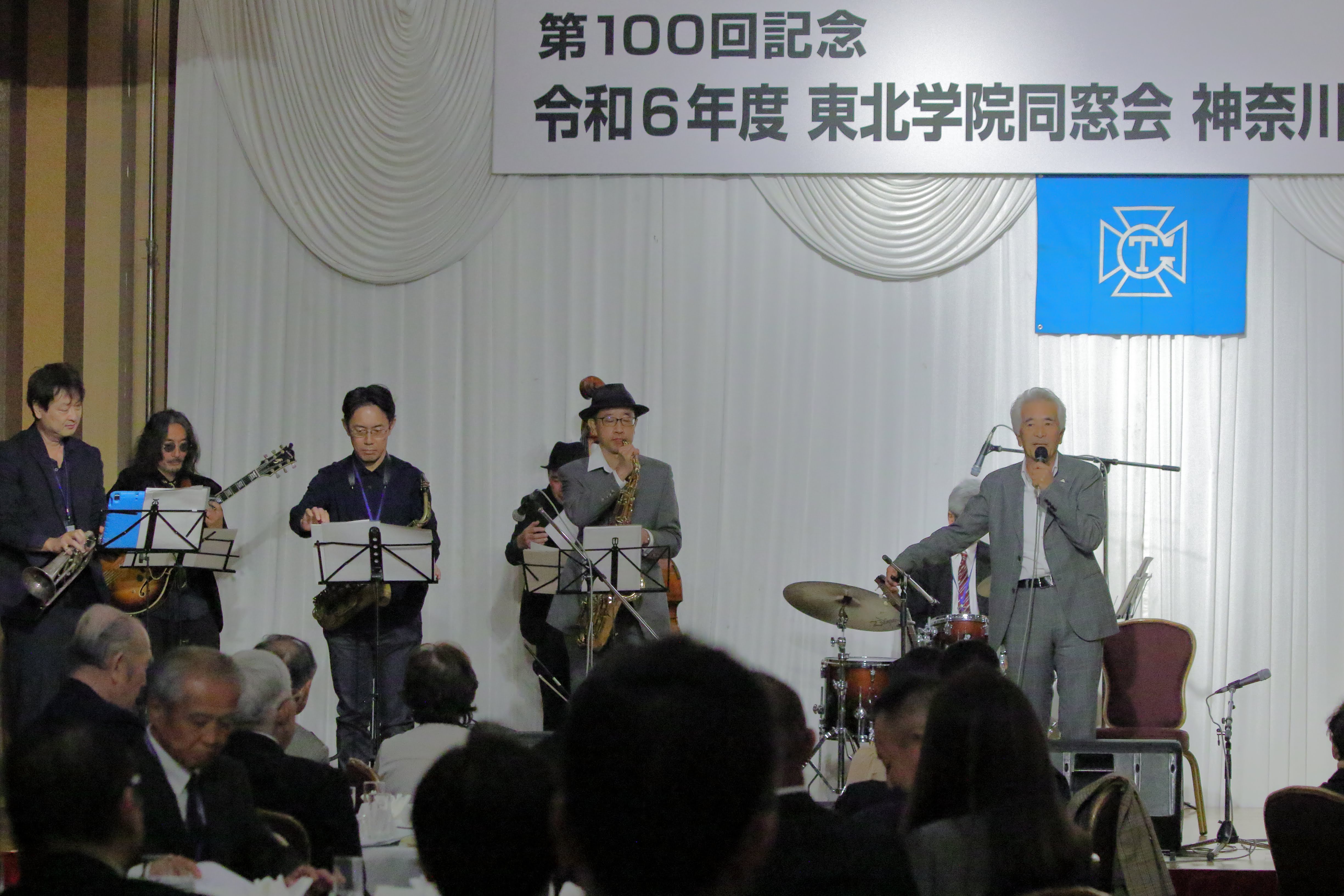 同窓生の青木さんを中心とした迫力あるジャズライブ、宮城県出身の時疾風関とベイスターズ関連グッズなどの抽選会など大盛況のうちに閉会いたしました。