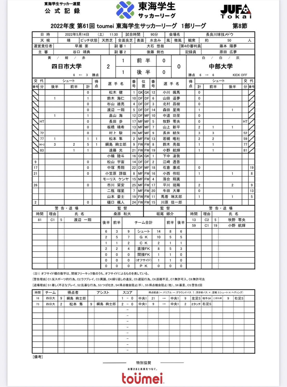 大会名:toumei東海学生サッカーリーグ戦