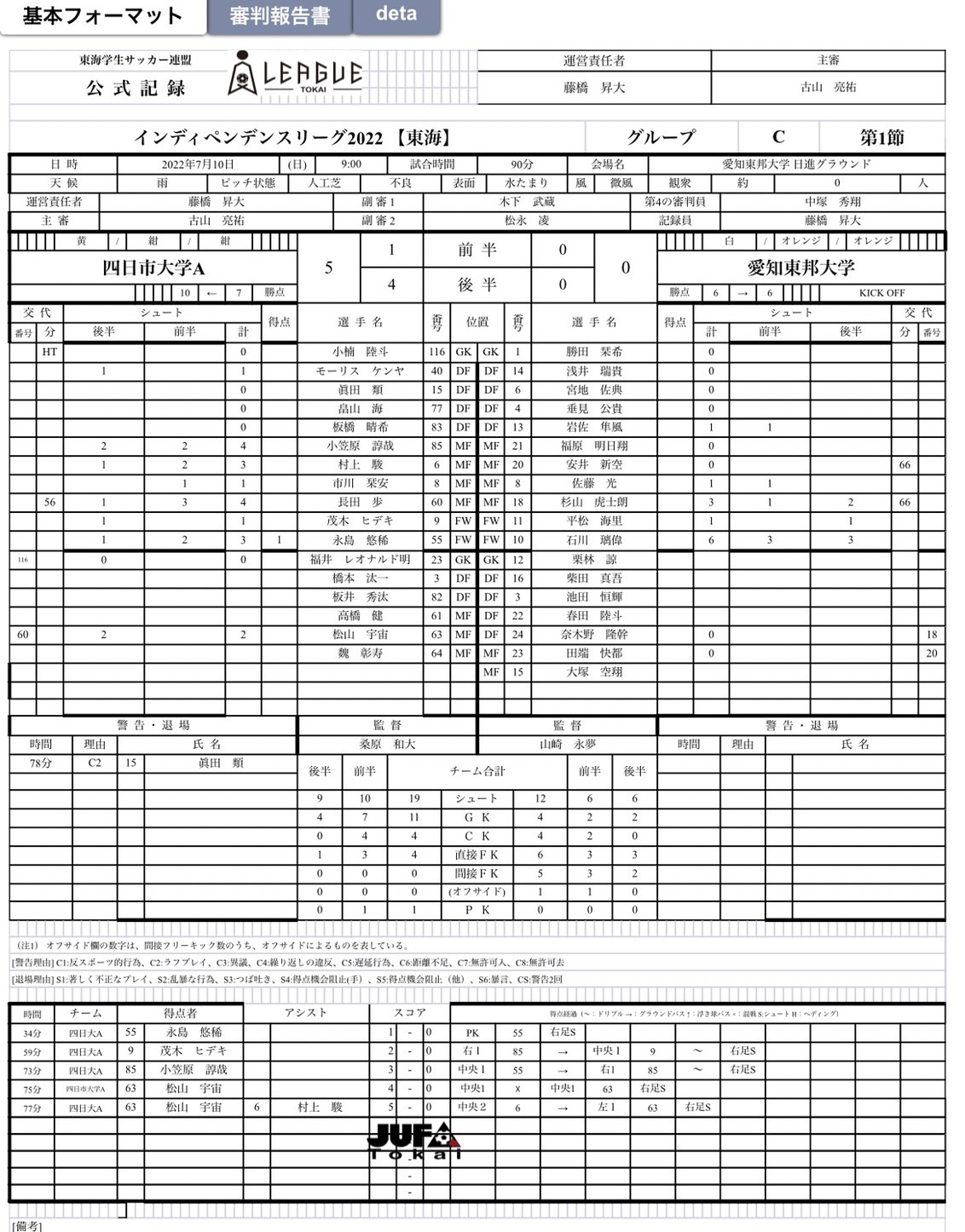 四日市大学サッカー部 スコア速報 by Player!
