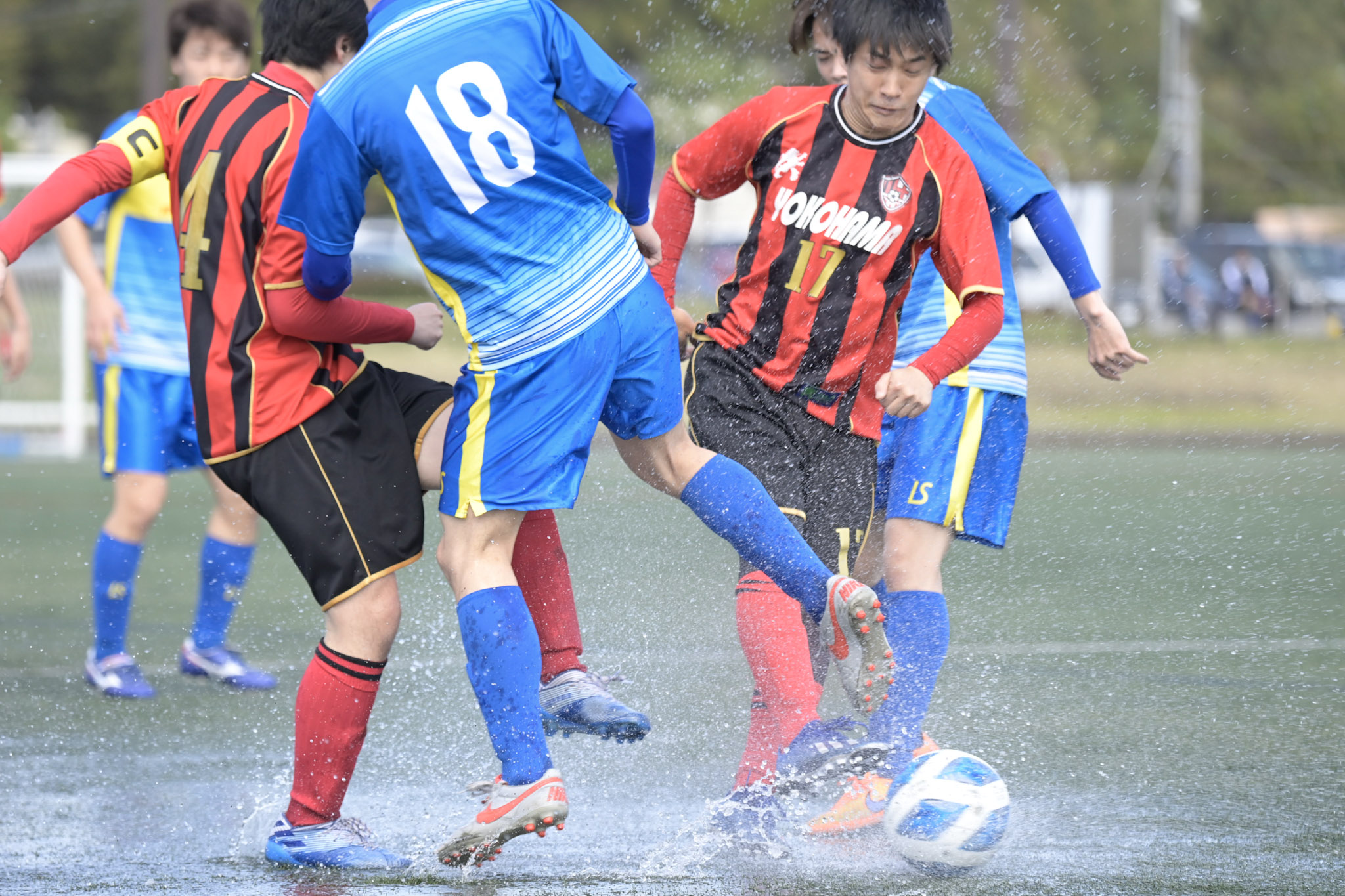 | 4月18日 県2部昇格決定戦 FUTURO-横浜ミラン グランドは人工芝だが昨夜の雨が残る水浸し状態 しかし徐々に水も引き試合開催 前半コーナーキックで先制するもすぐに同点に追いつかれる ケガ人2名出たが交代要員は先発メンバーと変わらない活躍をする 試合はPK戦 4人まで両チームともに全員決める 5人目をGK後田がとめるスーパーセーブ 5人目坂内が緊張感の中、落ち着いて決めてPK5−4で勝利で2部昇格が決まりました スタッフ、選手、今までチームに携わった方々本当にありがとうございました。 |
